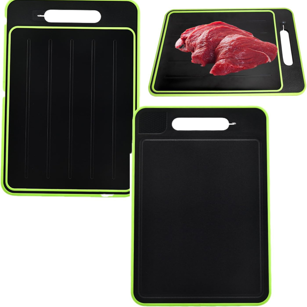 La tabla utiliza un material especial que acelera el proceso natural de descongelación sin necesidad de electricidad, permitiéndote descongelar carnes y pescados de forma rápida y segura.